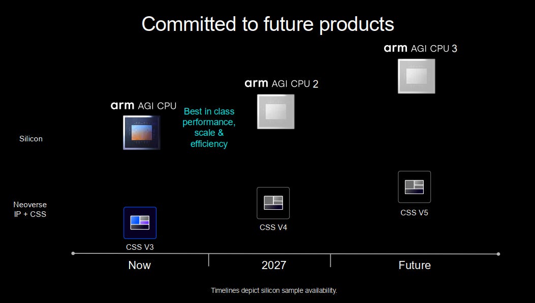 And the first Arm AGI CPU is just the first of a series of Arm CPUs, with AGI CPU 2 following next year and AGI CPU 3 after that.