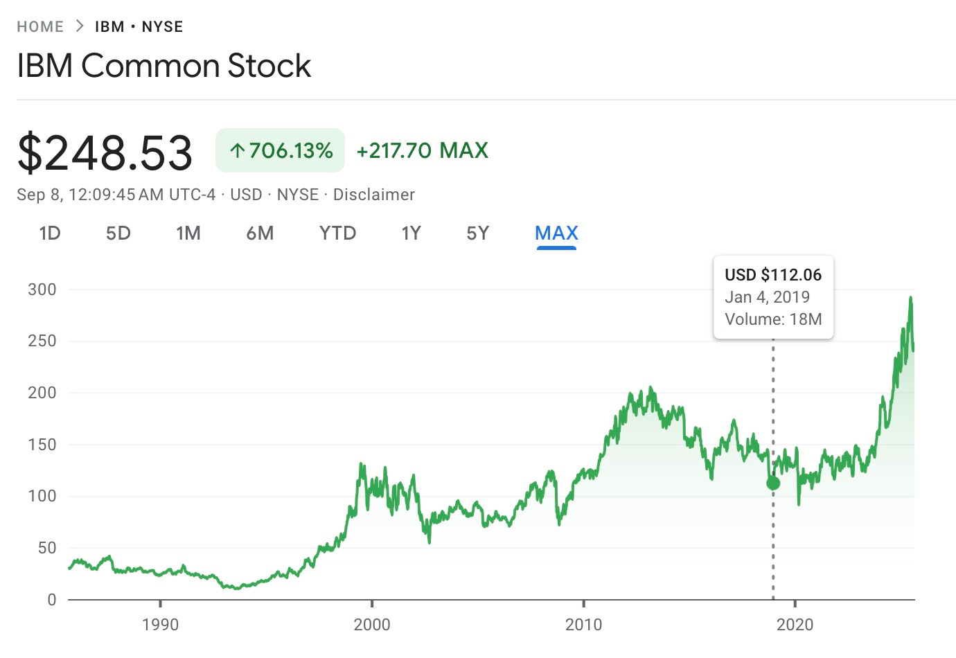 IBM today is a shadow of its former self. Its dominance long gone, it has defended its, highly profitable, place as a supplier of legacy mainframe systems and software, but other than that the business today is seemingly mostly focused on selling consulting services.