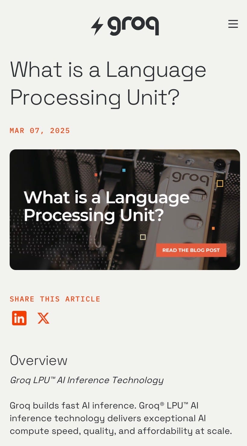 For more on the LPU Groq has provides a good overview.